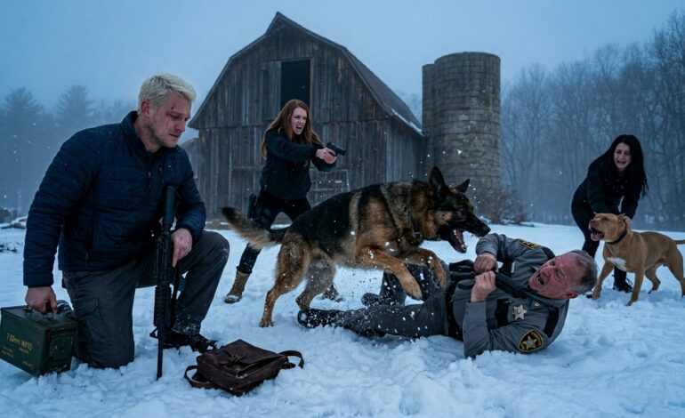Wstałam powoli, wyczerpanie odpłynęło, pozostawiając za sobą coś chłodniejszego. „Puść ją” – powiedziałam, siląc się na spokój. Oficer Pierce podszedł do mnie, napuszając się z pożyczoną pewnością siebie. Victor nie puścił Lily – wręcz przeciwnie, zacisnął uścisk. Ranger wynurzył się spod stołu, z jego piersi wydobył się pojedynczy, niski, ostrzegawczy pomruk, nie histeryczny – po prostu kontrolowany. Pierce złapał mnie za ramię, jakby musiał mi przypomnieć, kto rzekomo rządzi w Silver Creek. Nie uderzyłam go ani nie straciłam panowania nad sobą. Ostrożnie obróciłam jego nadgarstek, kierując go w dół i przytrzymując w sposób, który powstrzymał zagrożenie bez wyrządzania niepotrzebnej krzywdy. Victor krzyknął o wsparcie, a Pierce – czerwony na twarzy na podłodze – chwycił za radio, wykrzykując oskarżenia o „napaść” i „publiczne upijanie się”. Gdy syreny zaczęły rozbrzmiewać echem na ulicy, dotarło do mnie, że to nie tylko tyran z odznaką. To system. I tak mnie skuli, a kiedy Ranger stanął ochronnie między moimi kolanami a progiem, patrzyłem, jak wzrok Victora Hale’a przesunął się w stronę mojego psa – jakby Ranger był prawdziwym problemem. Czemu właściciel ziemski miałby się bać wyszkolonego wojskowego psa myśliwskiego… chyba że wierzył, że Ranger wywęszy coś, co zakopał?