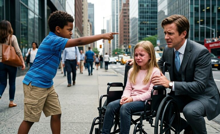 Lily stała tam, przemoczona od deszczu, z lekko zgarbionymi ramionami — nie ze wstydu, ale z zimna.