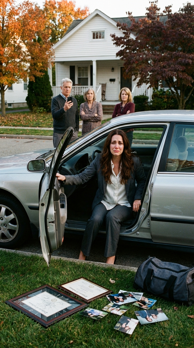 Ta chwila na podjeździe nie była początkiem mojej historii. Zaczęło się kilka godzin wcześniej, w znacznie mniejszym miejscu, z tą samą granatową sukienką i wiadomością, która wstrząsnęła mną do głębi.