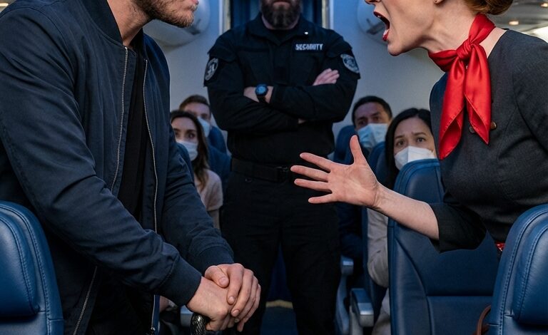Pasażerowie z miejsc 1B i 2A przestali patrzeć w telefony. Cisza w pierwszej klasie stała się gęsta. „Nie wchodzę”, powiedział Samuel, wyciągając ponownie telefon, żeby zacząć nagrywać – odruch zrodzony w epoce, w której żył. „Jestem klientem płacącym z zarezerwowanym miejscem. Jeśli trzeba kogoś przesunąć, standardowym protokołem jest poproszenie o ochotników, a nie obranie konkretnego pasażera, który już siedział.