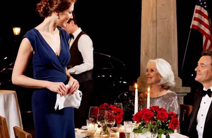 Victoria stála ztuhlá mezi VIP stolem a uličkou, její šampaňské šaty se odrážely od lustru. Paige seděla vedle prázdné židle, slzy jí stékaly po tváři, ruce měla sevřené v klíně. Nedívala se na matku. Dívala se na ubrus.