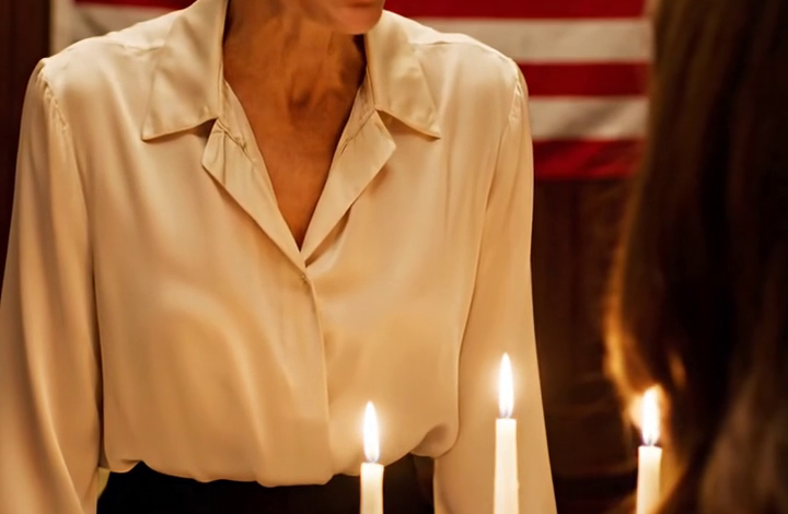 Sandra si uhladila vlastní halenku – vždycky elegantní, vždycky drahou. „Pohodlí není všechno. Žena se musí snažit.“